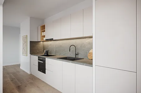 Die stilvolle Ausstattung der Wohnungen – von Ein-Zimmer-Apartments bis hin zu großzügigen Drei- und Vier-Zimmer-Familienwohnungen – lässt keine Wünsche offen.
